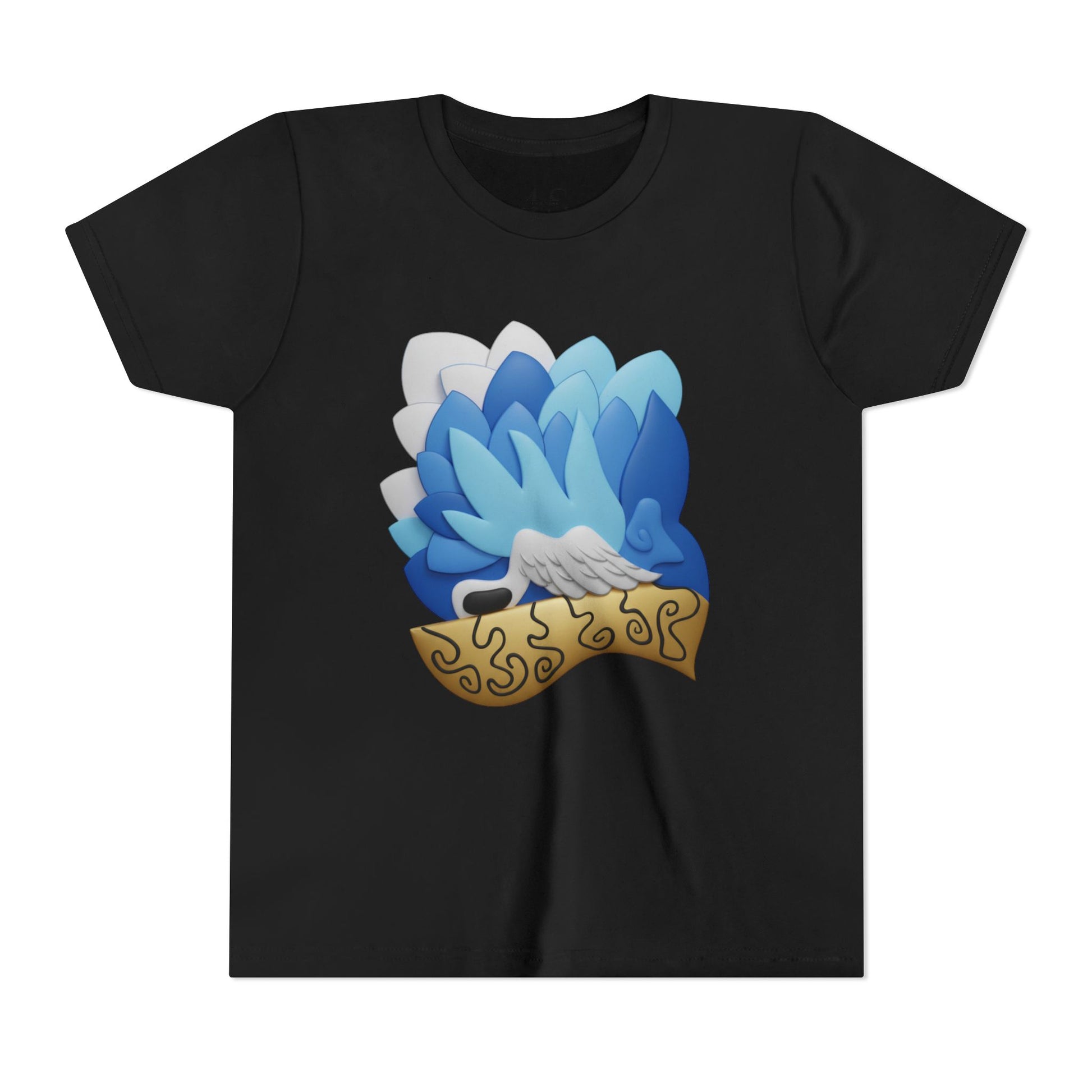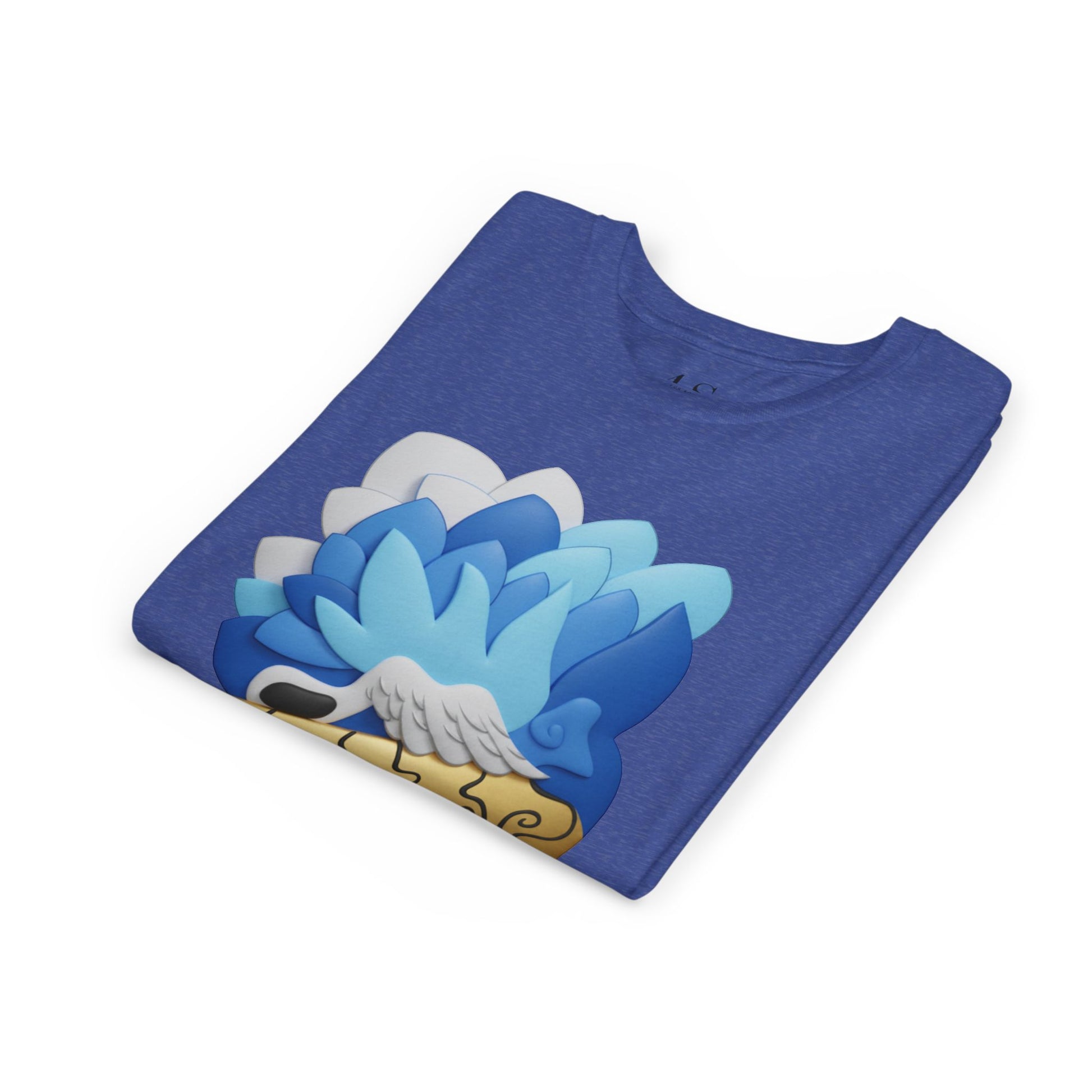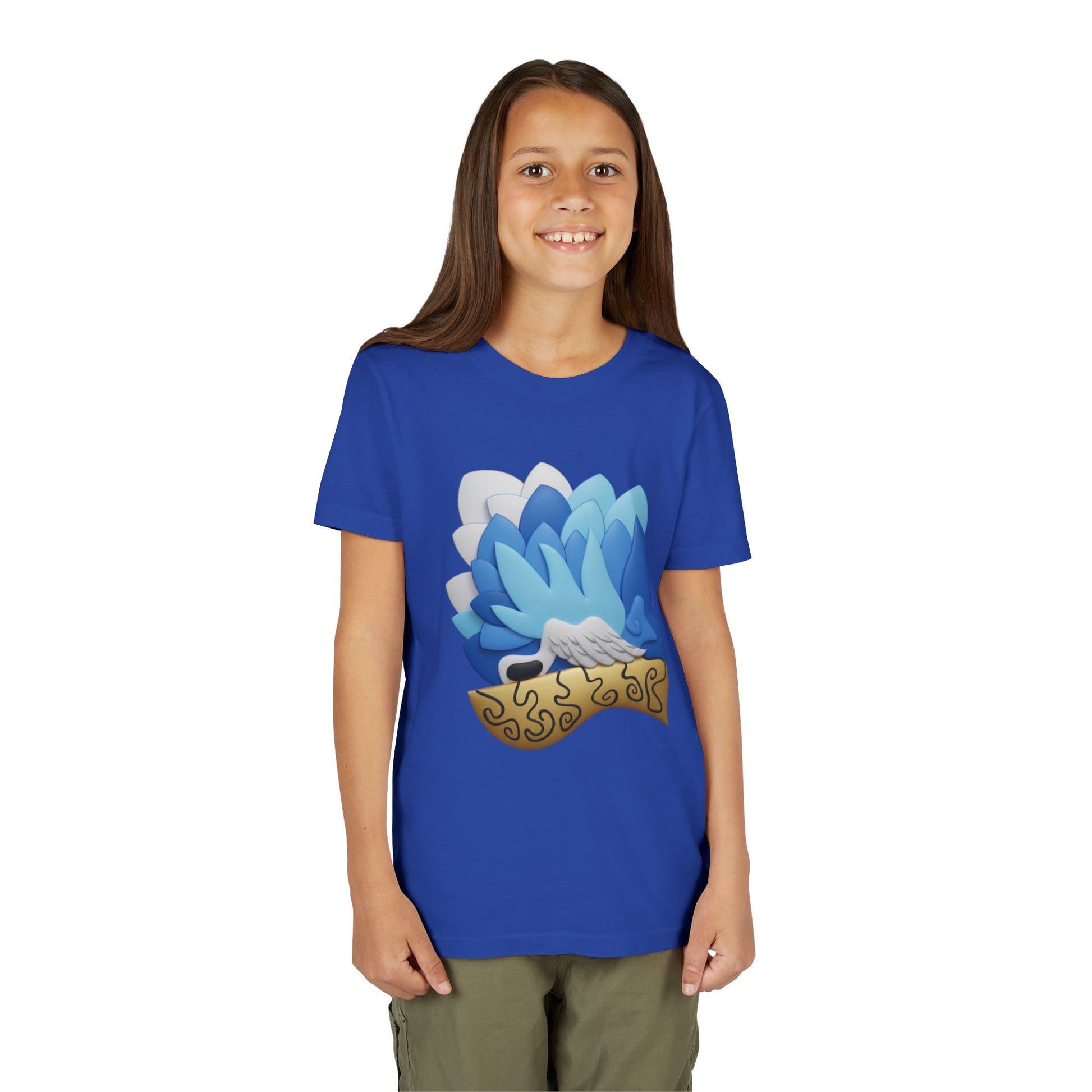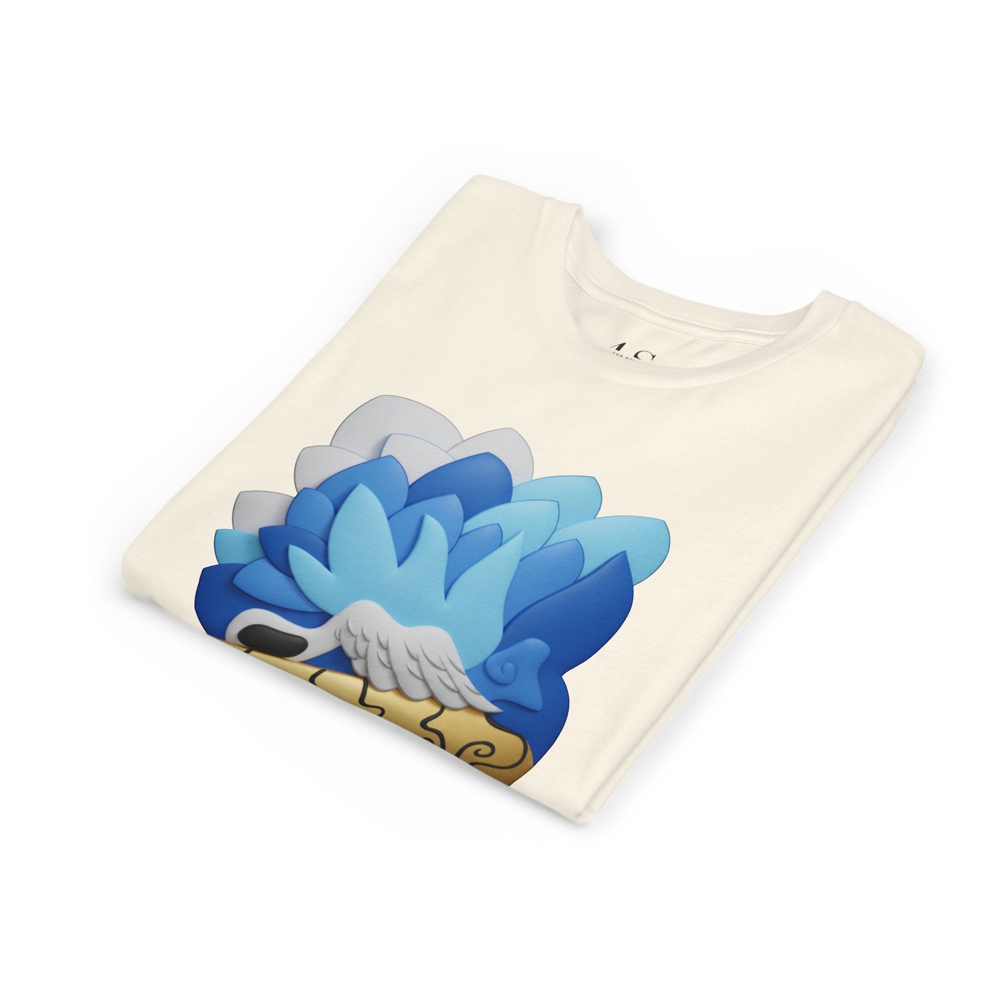 Camiseta juvenil — Camiseta gráfica azul con plumas