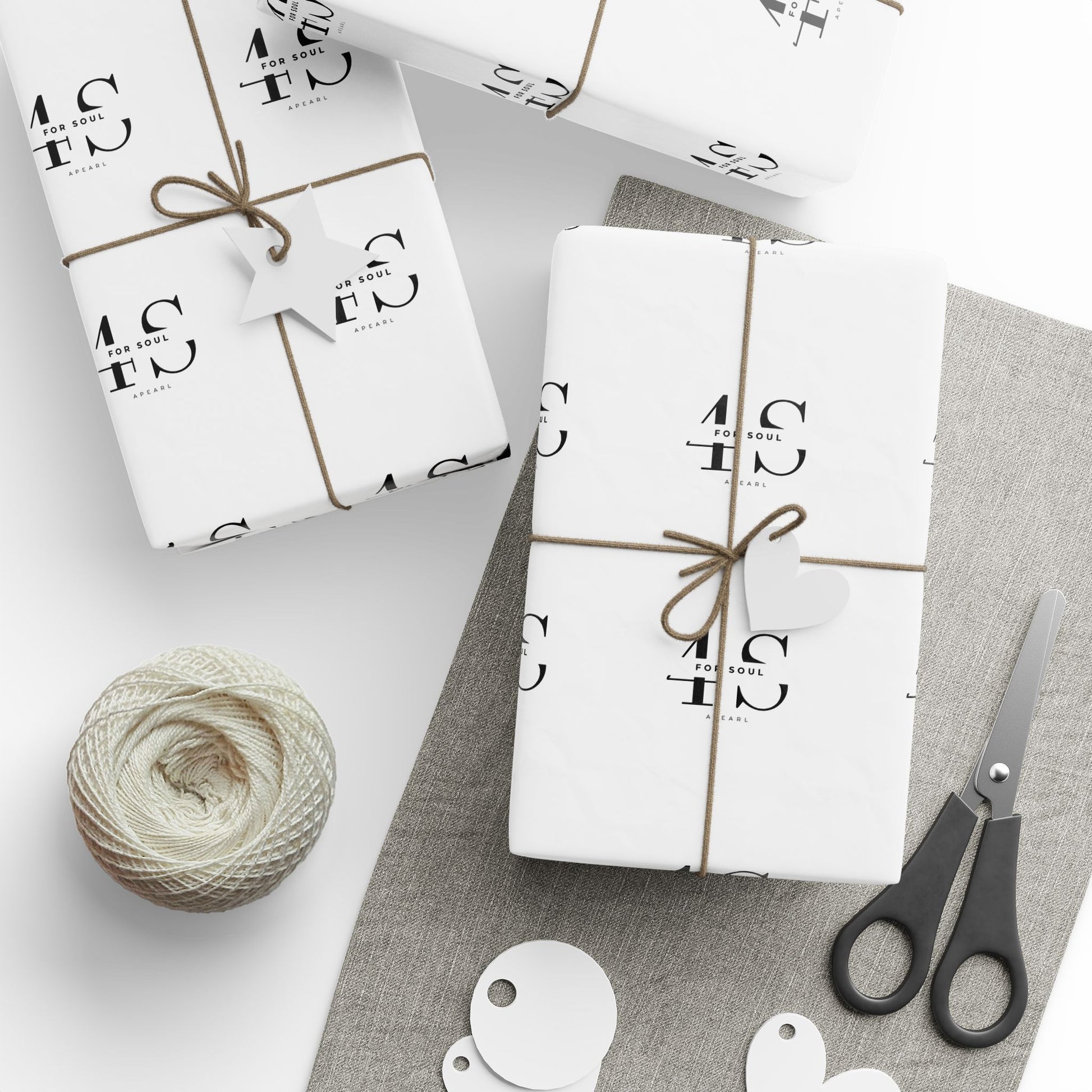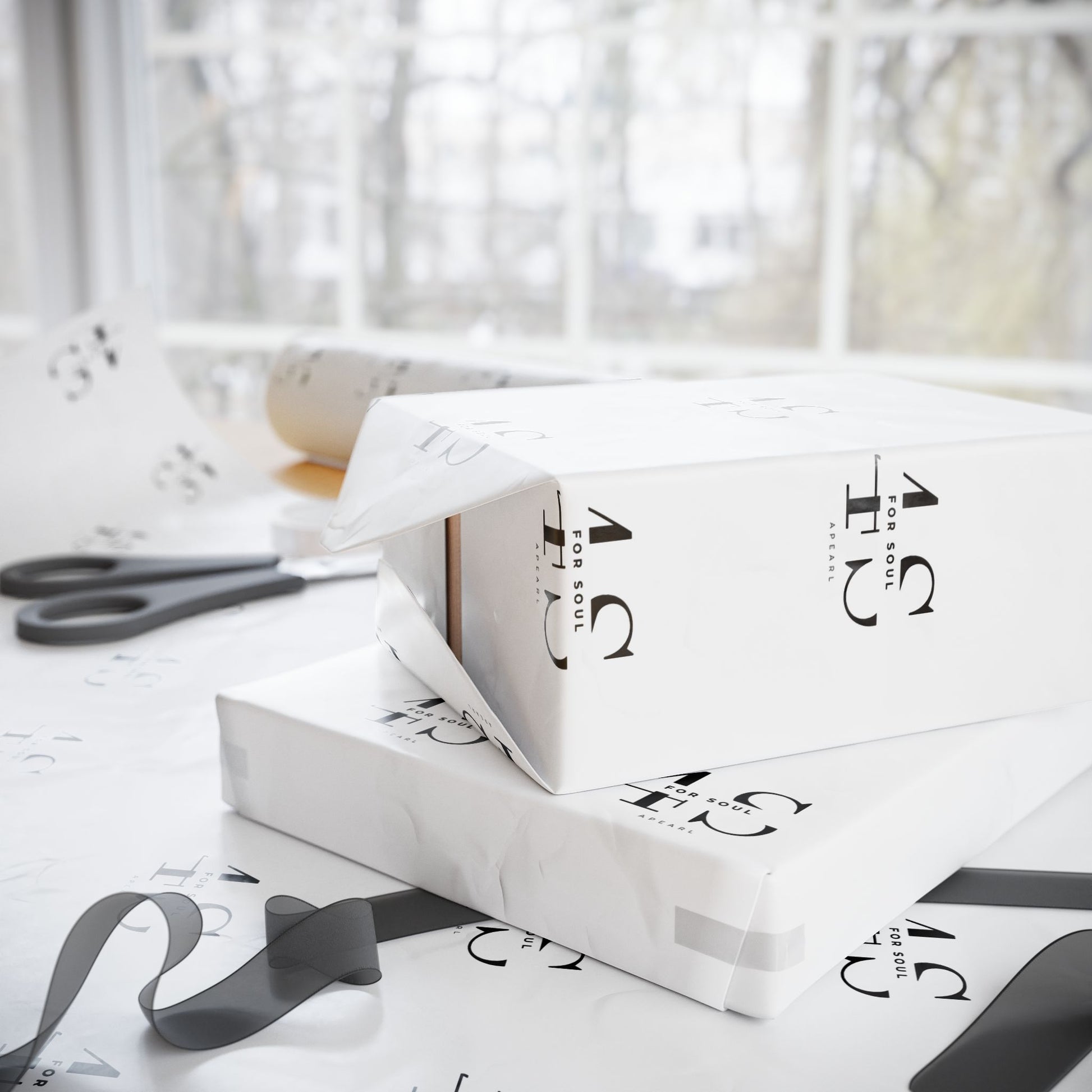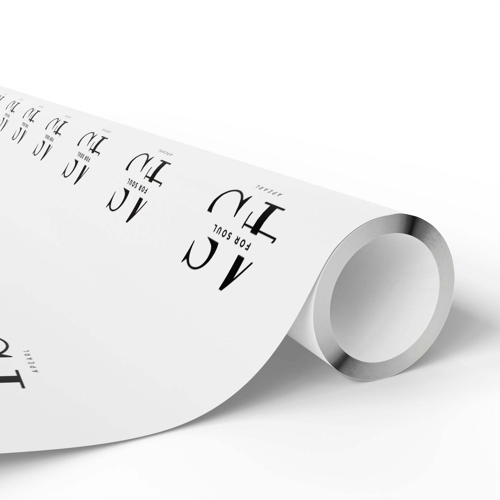 A long, elegant roll of high-quality wrapping paper printed on 90 gsm fine art stock. The print is crisp and minimal — a repeating black motif on a clean white background — giving each package a refined, understated look. Choose glossy for a sleek, luminous sheen or matte for a soft, gallery-style finish. Available in three generous roll lengths so you can wrap single large gifts or multiple small ones. The one-sided design leaves the reverse clean and ready for tape, tags, or hand-written notes. Subtle production markings (a white edge with a small bar and QR code) are included at the roll ends.